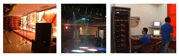 舞厅的专业扩声系统既能满足演唱的需要,又要能满足跳舞(包括劲舞)的需要。整个舞厅灯光的设计具有三感:即新奇感、豪华感和对比感。卡拉OK房扩声系统具有足够的声压,良好的音色;系统可靠,稳定;有较完善的扬声器保护措施;良好的前置放大器,使歌唱变得轻松自如。为提高速度,减少人为差错,使用无人控制的VOD视频点播系统。