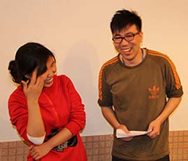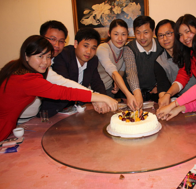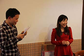 接下来我们在环境优美的钓鱼台酒家举办了生日会。生日会上,每个人都用方言向寿星们表达了自己深深的“爱意”。
