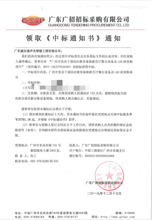 中标--广州市党员干部法纪教育基地舞台设备和LED大屏采购项目